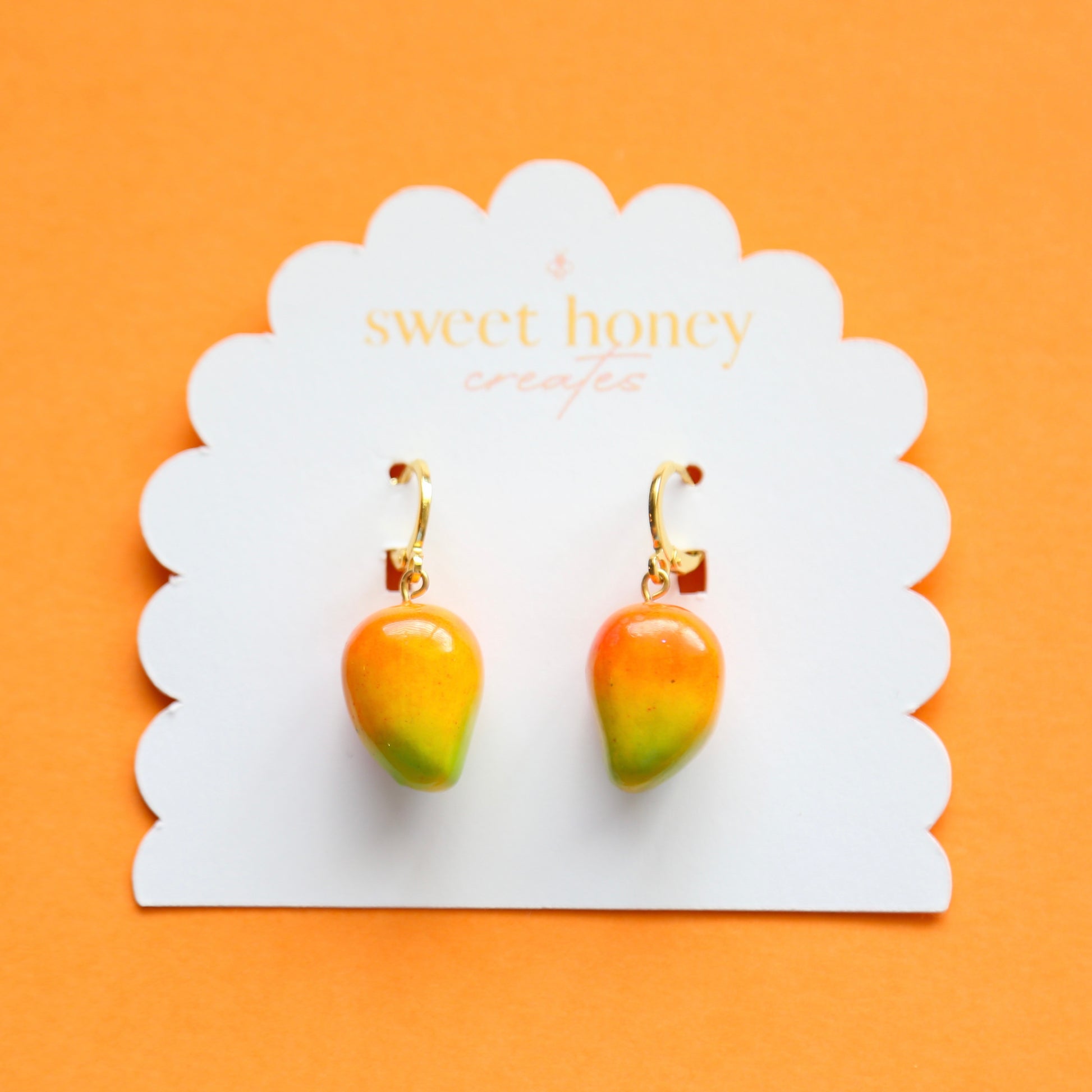 Add a splash of fruity fun with these playful mango earrings, crafted by hand with love and care.